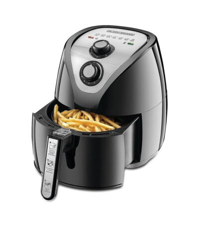 Black & Decker Air Fryer AF600 (Model AF600-B5), features a systematic design with an oven-grade smart temperature control system to make the ingredients crispy outside and tender inside. This 9-in-1 multi-function wonder has 100℉ to 450°F industry-leading temperature plus the 360°hot air circulation. It wraps your food in high heat to get it ready quicker with less fuss. A large capacity basket serves 3 to 5 people at one go.